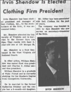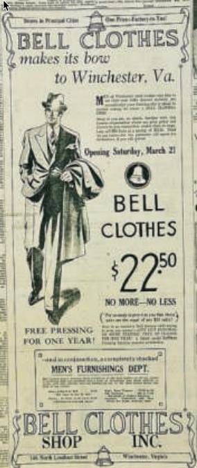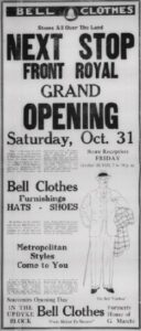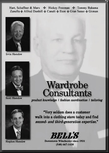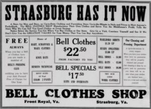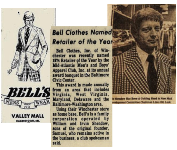 Prior to opening his first store, Gilbert Shendow introducing Bell Clothes to Shenandoah Valley residents of Strasburg, Front Royal and Winchester –through his traveling salesman initiative representing his Washington D.C. mentors. His plan was to invigorate the Washington store’s sales by building a new client base away from the capitol.